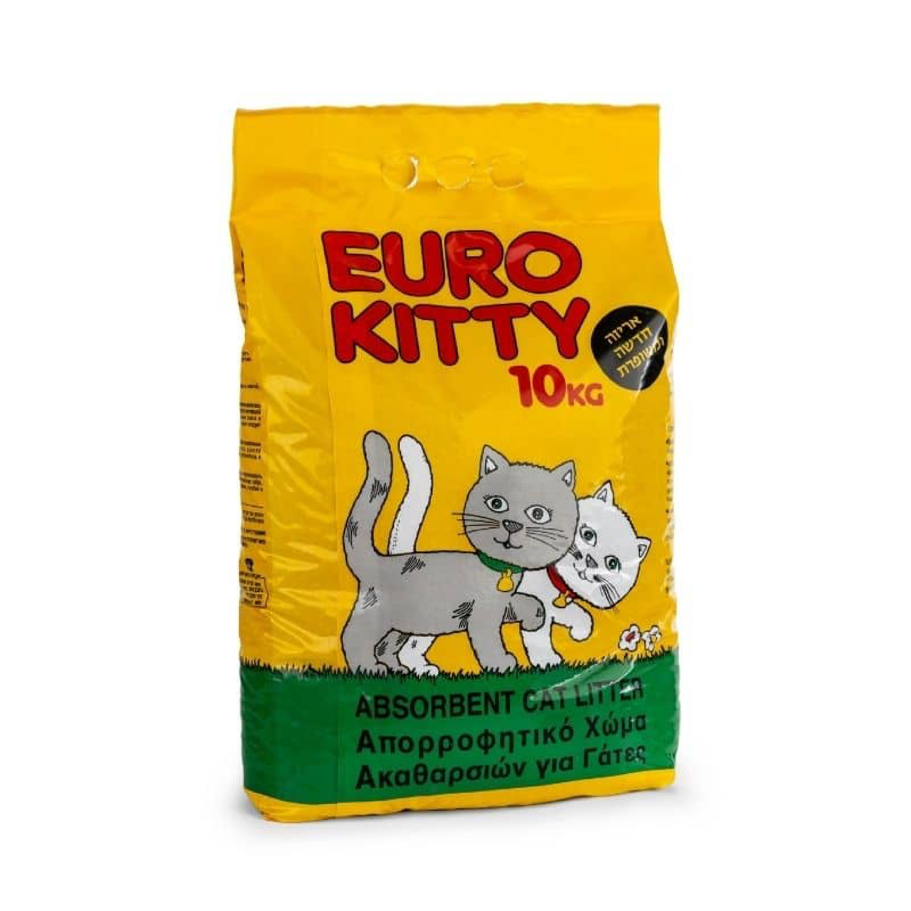 חול לחתול לארגז הצרכים מבית יורו-קיטי. חול בסיסי לחתול, עשוי מחצץ, מתאים לכל גדלי וכל סוגי החתולים. החול אינו מתגבש, סופג ריחות ונוזלים. מגיע באריזה של 10 ק"ג