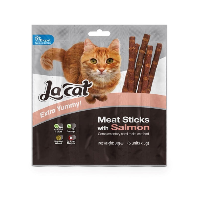 חטיפי לה קט בשרניים וטעימים במיוחד. כל חטיף מכיל 6 מקלות בשר במשקל כולל של 30 גרם. החטיפים מגיעים במגוון של שלושה טעמים: כבש, סלמון ועוף.