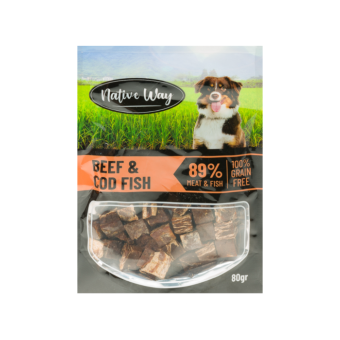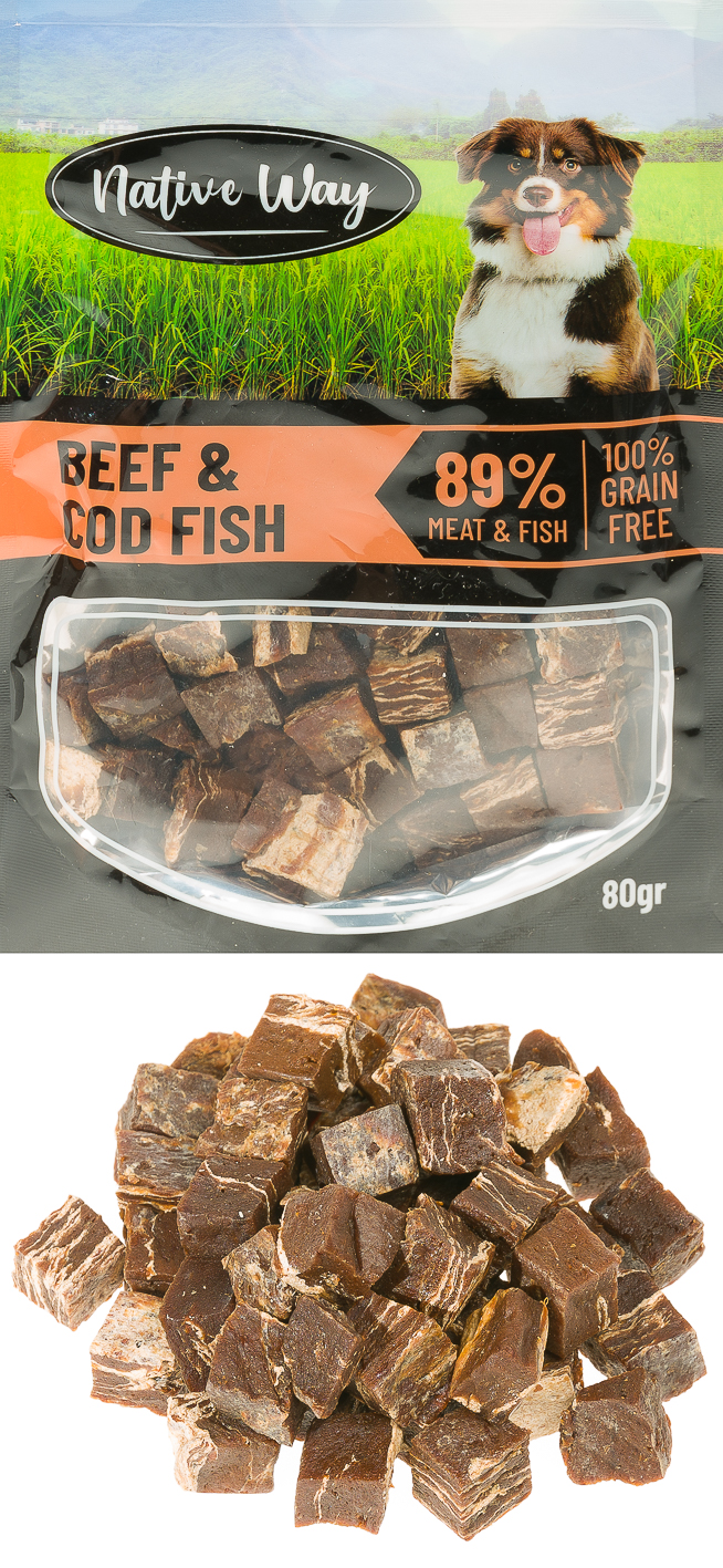נייטיב ואיי Native way חטיף אילוף קוביות בטעם בשר ודג קוד